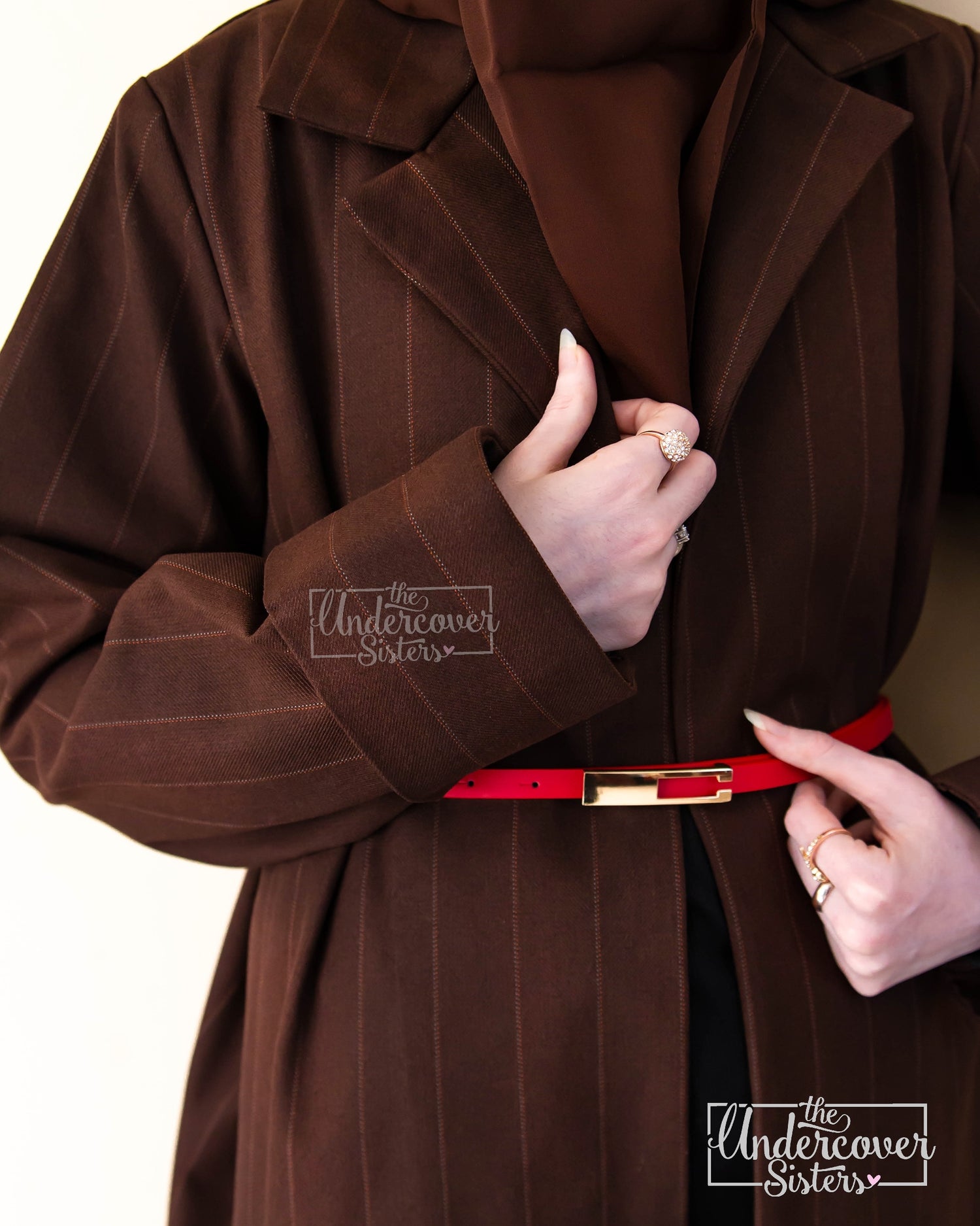 Hazelnut Lapel Coat Abaya made in top-notch Coat fabric to give you those cozy winter feels and reduce the need for all those layers.