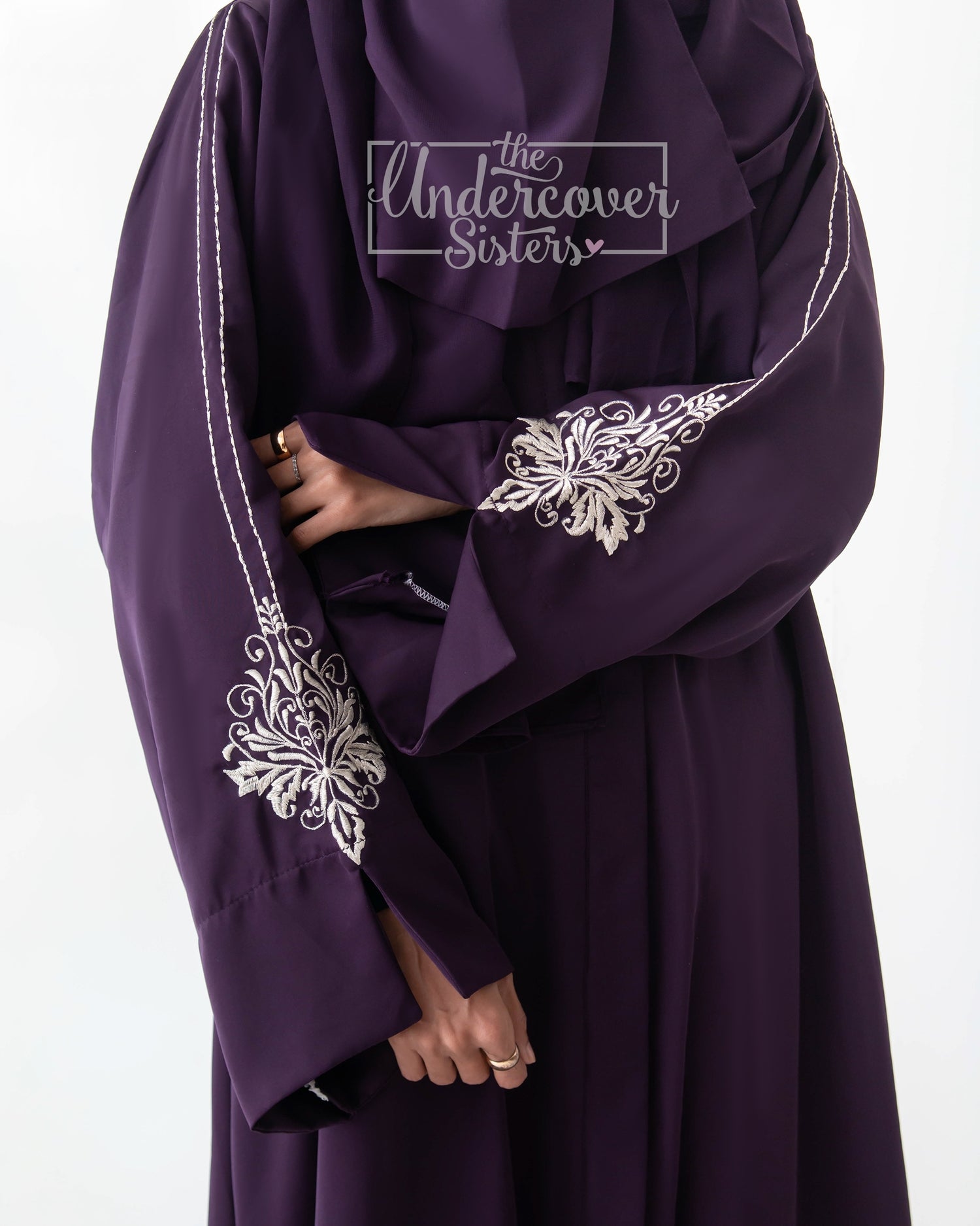 This Embroidered Motif inspired by Andalusi Art is the hallmark of Muslim Art. It's further enhanced by the broken line embroidery that goes all the way up to the shoulders and then tapers off into a slit that culminates around the wrist in baggy style sleeves.