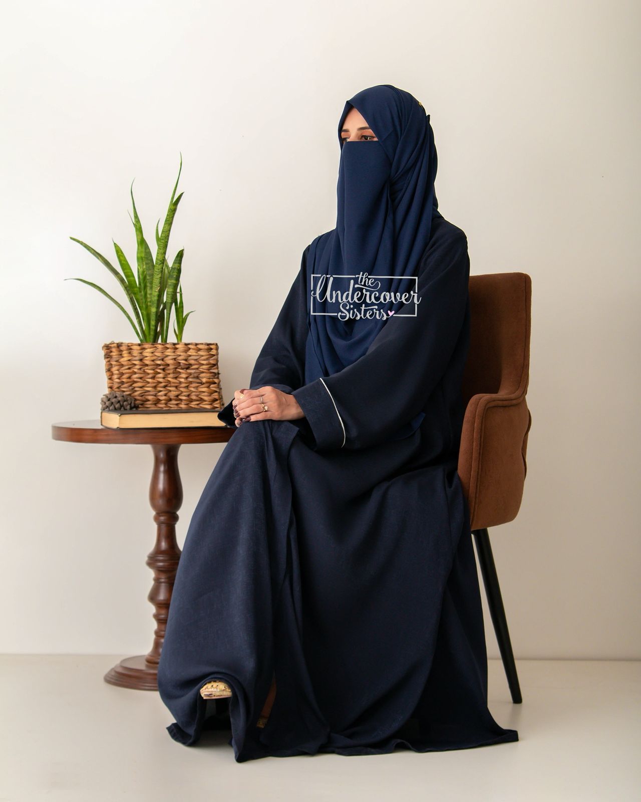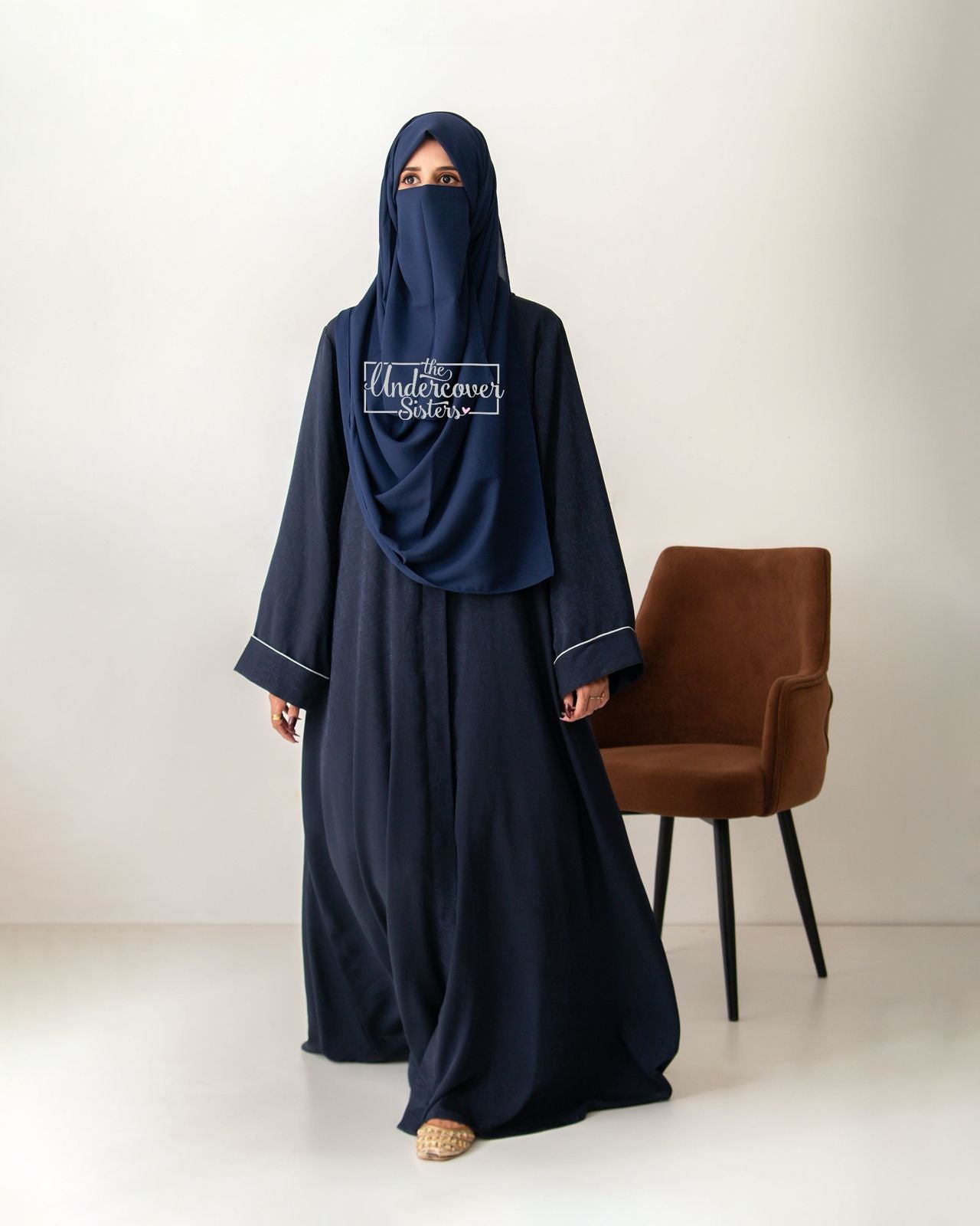 This stunning modest dress in deep blue exudes timeless elegance. The flowing fabric drapes gracefully, offering a soft and lightweight feel perfect for special occasions or evening wear.